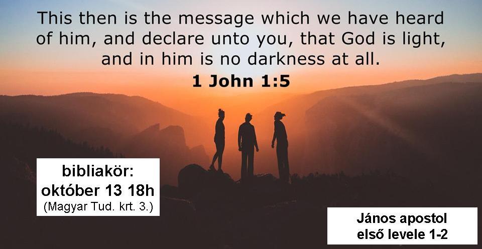 A szorgalmi időszakban kéthetente, a felsőoktatásban tanuló diákoknak (oktatóiknak), illetve a felsőoktatásba készülő középiskolásoknak szervezett bibliakörök 2022/23. tanévének második alkalmát október 13-án, csütörtökön 18 órától tartottuk meg Zoom alkalmazás segítségével, on-line formában. János apostol első levelének 1-2 fejezeteiről beszélgettünk Csermely Péter vezetésével. A bibliakör szöveges összefoglalása innen tölthető le, a bemutatott ppt ábrák pedig innen.