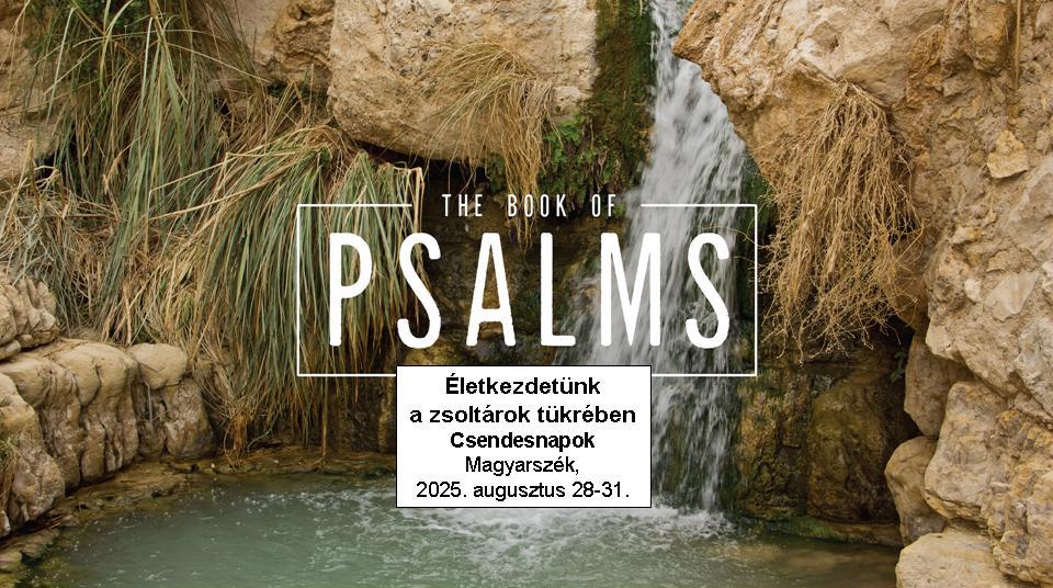 2025. augusztus 28-31-én csendesnapokat tartottunk "Életkezdetünk a zsoltárok tükrében" címmel a magyarszéki karmelita kolostorban, annak minden szobáját megtöltve. A csendesnapokon lehetőség volt három imapárba rendeződve három témát (Ott vagyok-e az életemben, ahol kellene? Kilátástalanságból örömbe; Úton Jézussal Isten felé) átimádkozni, a magyarszéki karmelita nővérek zsoltárimádságaiba bekapcsolódni, előadásokat, igehirdetéseket hallgatni, a természetben valamint csendben imádkozni, gondolkodni és úrvacsorát venni. Áhítat hangzott el "Jön a mi Istenünk, nem hallgat" címmel Habakuk próféta könyve 3,19 igéje alapján. Az áhítat hangfelvételét itt lehet meghallgatni, és a szövegét innen lehet letölteniÁhítat hangzott el "Nem félek semmi bajtól, mert Te velem vagy" címmel a 23. zsoltár alapján. Az áhítat hangfelvételét itt lehet meghallgatni, és a szövegét innen lehet letölteni. A záró istentisztelet a 62. zsoltár 2., 3., 12. és 13. versei alapján, "Szólott egyszer az Isten, és ezt a két dolgot értettem meg: Istennél van az erő; nálad van, Uram a szeretet" címmel tartott igehirdetését itt lehet meghallgatni, és a szövegét innen lehet letölteni.
