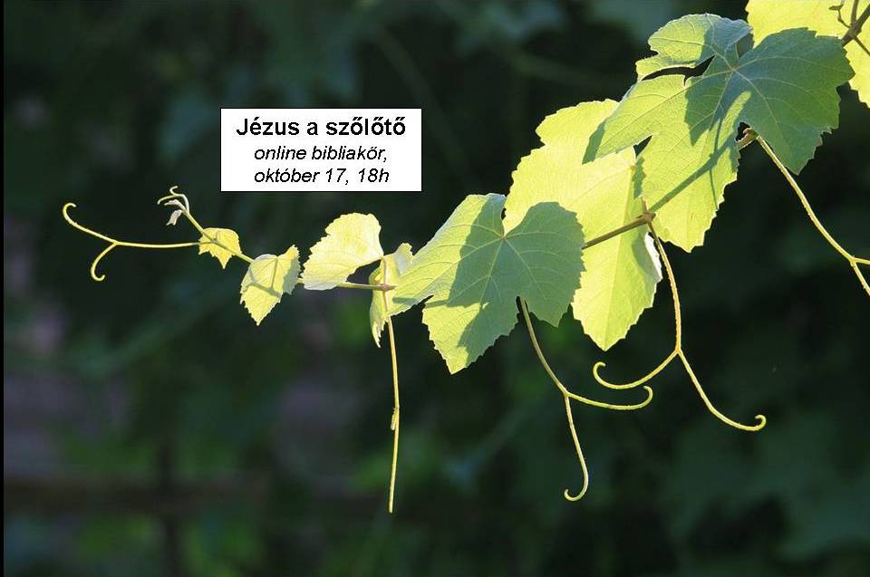 Mi minden volt a szőlőtő az Ószövetségben? Miért és miben Jézus az igazi szőlőtő? Mit jelent az, ha én Jézusnak, mint szőlőtőnek a szőlővesszője vagyok? Miért és hogyan tisztít meg Jézus közelsége? Miért fontos, hogy megmaradjunk Jézus közelségében? Mi minden gyümölcsöt termünk Jézus közelségében? Hogyan függ össze a gyümölcs és a földbe vetett búzaszem? Ezekről a kérdésekről is szó volt október 17.-én, csütörtökön este 18 órától, ahol Jézus én-mondásai közül az "Én vagyok a szőlőtő" mondással (Jn 15,1-8) foglalkoztunk. A beszélgetés összefoglalója innen tölthető le. A következő online bibliakör november 14-én 18 órától lesz Jézusról -- aki a Jó Pásztor és az ajtó. A 18 órától való bejelentkezéshez a linket a egyetemi.bibliakor@gmail.com email címen lehet elkérni.