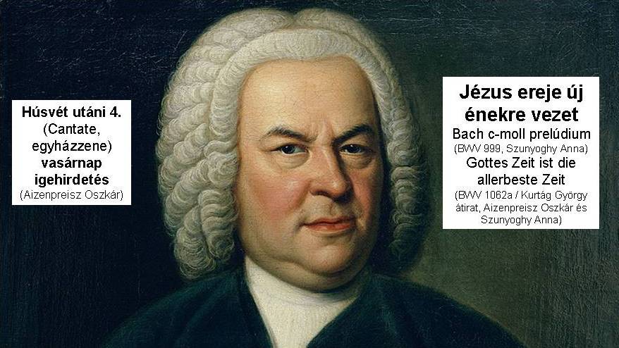 A Bach Mindenkinek Fesztivál keretében Aizenpreisz Oszkár és Szunyoghy Anna két Bach művet (a c-moll preludiumot, BWV 999 és a Gottes Zeit ist die allerbeste Zeit, BWV 1062a Kurtág György-féle zongora átiratot) játszott el, amely (az igehirdetés előtt és után) itt hallgatható meg. Az igehirdetést Aizenpreisz Oszkár tartotta Jn 16,5-15 (https://szentiras.hu/RUF/jn16,5-15) alapján. Hogyan van hatalma Jézusnak a minőség, a tér, az idő, a mennyiség, a természet és a halál felett? Miért vannak a tanítványok sokkos állapotban? Hogyan lesz az evangélium hirdetése, a jó hír, új ének? Ezekre a kérdésekre is választ találhatunk az elhangzottakban. Jó zene- és igehallgatást kívánok!