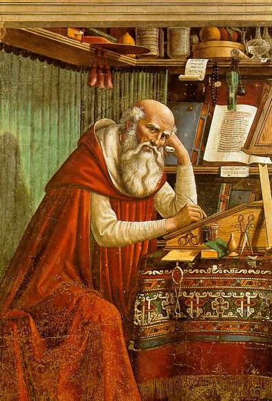 Ezzel a két képpel szeretném illusztrálni azt, hogy a saját életemben hogyan volt összeegyeztethető a tudomány és a hit. A baloldali kép az 1999-ben megjelent kutatásmódszertani könyvünk címlapja. A könyvhöz egy tekintélyes tudós festményét kerestem, és így bukkantam rá a címlapképre. A jobboldali kép ugyanezt a képet ábrázolja -- ahogyan húsz évvel később, 2019-ben tekintettem rá. Ekkor döbbentem ugyanis rá arra, hogy Domenico Ghirlandaio festménye Szent Jeromost ábrázolja a közben, ahogyan a Szentírást fordítja latinra. Valahol ez a történet a számomra egy igen személyes és mély példája annak, hogy mennyire jól összeegyeztethető a tudomány és a hit az ember életében. Erről szólt az első egyetemi bibliakör is.