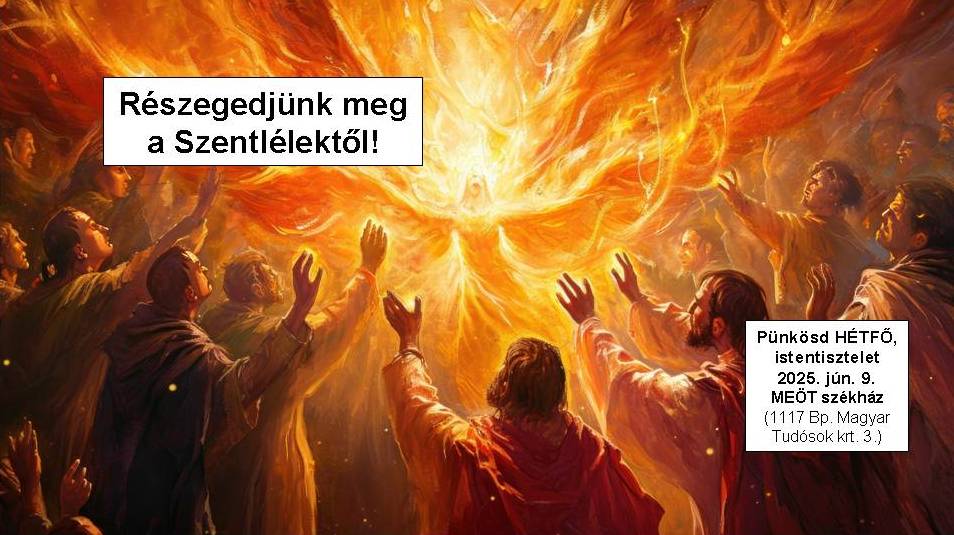 Mi történt az apostolokkal pünkösd ünnepén? Miért lesz nekünk a mi személyes pünkösdünk teljesen más, mint az apostoloké? Honnan tudhatod, hogy téged is meglátogatott már a Szentlélek? Miért nem lehet nem észrevenni azt, amikor betölt minket a Szentlélek? Mit tegyünk, hogy megtapasztaljuk a Szentlélek kiáradását? Melyek lehetnek a Szentlélek ajándékai nekünk személyesen? Erről fog szól a pünkösdi istentiszteletünk igeszakasza (ApCsel 2,1-13) és az igehirdetés. Az igehirdetést itt lehet meghallgatni, a szövegét innen lehet elolvasásra letölteni. A következő istentisztelet június 15.-én, a Szentháromság ünnepén este 6-tól lesz. Szeretettel várunk minden felsőoktatásban tanulót, vagy oktatót vagy oda készülő középiskolást a MEÖT székházban!