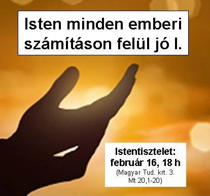 A bőjtelő időszakának három igehirdetése (a szőlőmunkások és a magvető példázata, valamint a jerikói vak története) mind-mind arról szól, hogy Isten minden emberi számításunkon felül jó. Miért nem bolond a szőlősgazda, aki mindenkinek egyenlő bért ad? Mi mindenre tanít minket ez a „felháborító” példázat? Mennyit kell dolgoznunk az örök életért? Adhat-e két örök életet Isten? Adhat-e fél örök életet Isten? Miért buktak meg a legjobb apostolok? Miért van esélyünk arra, hogy mi ne bukjunk meg úgy, mint ők? Miért kegyelem már pusztán a munka Isten szőlőjében? Milyen az örömöt termő munka? Miért vagyunk mi mindannyian kegyelemre szoruló, haszontalan szolgák? Hogyan juthatunk el itt és ma a kegyelemre? Erről fog szól az igeszakasz (Mt 20,1-16) és az igehirdetés. Az igehirdetést itt lehet meghallgatni, a szövegét innen lehet elolvasásra letölteni. A következő istentisztelet február 23-án, vasárnap este 6-tól lesz. Szeretettel várunk minden felsőoktatásban tanulót, vagy oktatót vagy oda készülő középiskolást a MEÖT székházban!